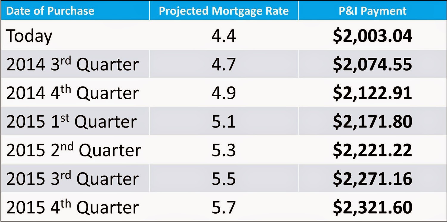 Here is a simple demonstration of what impact these projected changes would have on the mortgage payment of a home selling for approximately $250,000 today:Friday, April 4, 2014
