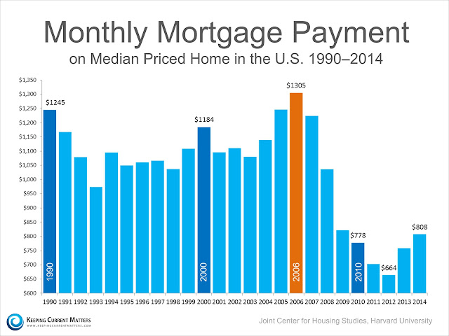 However, there was also information buried within the report that revealed that now is definitely the time to buy your first home or move-up to the home of your family’s dreams. With home prices still below peak values and mortgage rates still near historic lows, the monthly mortgage payment on a median priced home is less than at almost any time in the last 25 years.